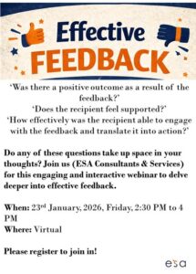 We invite you to join us for this webinar on Effective Feedback on 23rd January, 2026, from 2:30 PM to 4 PM. This is a virtual webinar. Please register with us by clicking on this link.